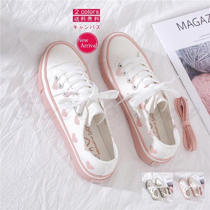 秋新作 キャンバス レディース スニーカー ハート柄 可愛い カジュアル
