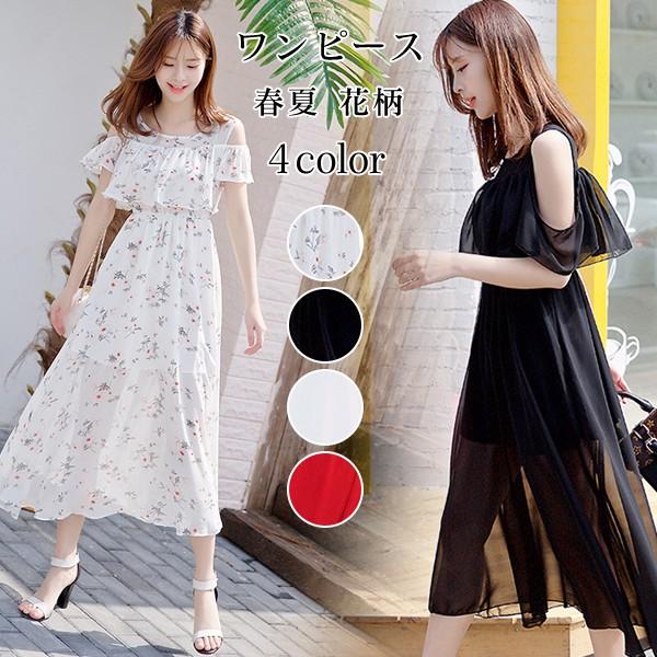 ワンピース レディース 40代 30代 きれいめ ワンピース 春夏 マキシワンピース半袖 肩だしワンピースシフォン 花柄 ロング