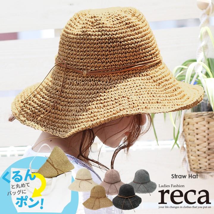 麦わら帽子 折りたたみ 春 夏 ハット 帽子 リボン つば広 紫外線対策