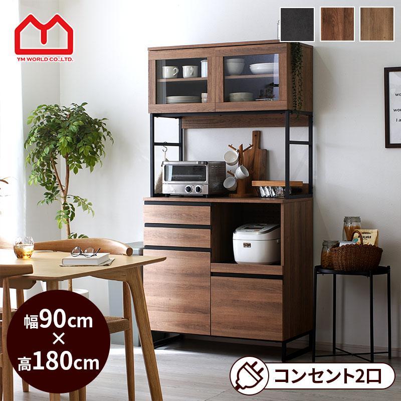 食器棚 おしゃれ 幅90cm レンジ台 キッチン収納 食器棚 58 001