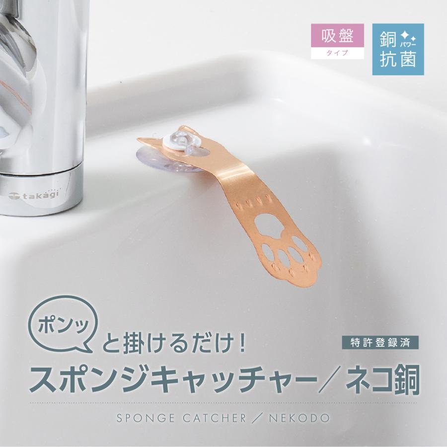 ネコ スポンジキャッチャー スポンジ置き スポンジホルダー 銅 抗菌