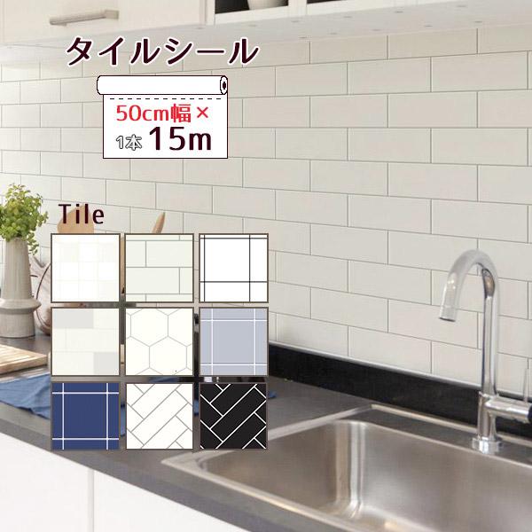 壁紙シール おしゃれ はってはがせる 壁紙 シール 幅50cm 15m巻 タイル