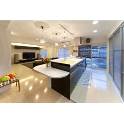 家族の顔が見える広いキッチン リフォームなどの参考に おしゃれで