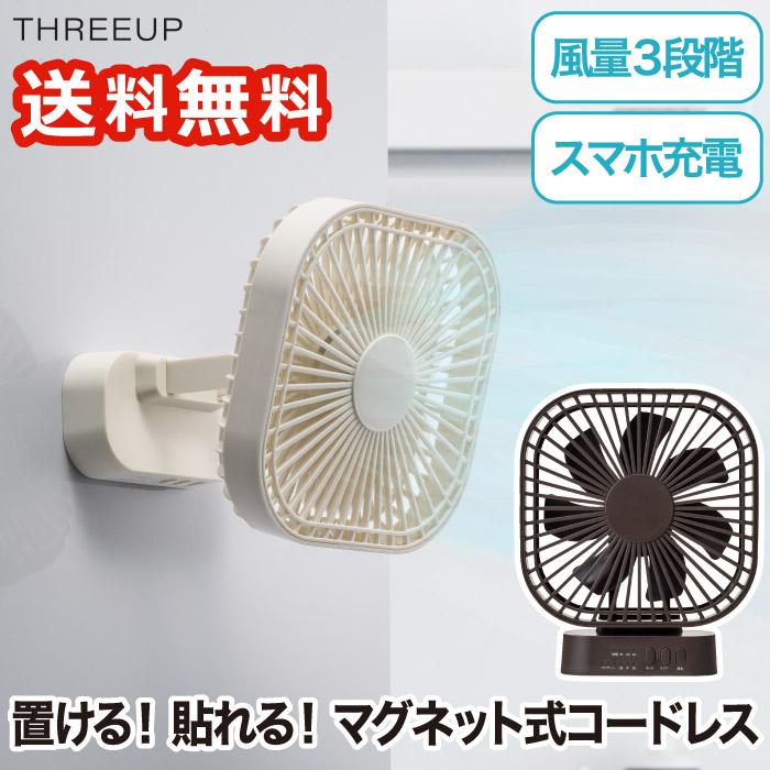 Three Up 充電式コードレスファン Df T1915 アイボリー ブラウン 卓上