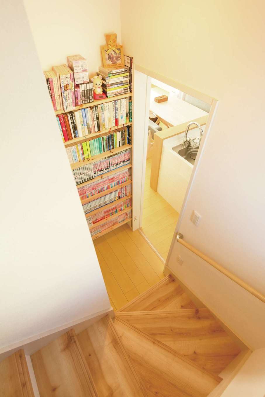 キッチンの横 階段下のデッドスペースを有効利用した図書コーナー