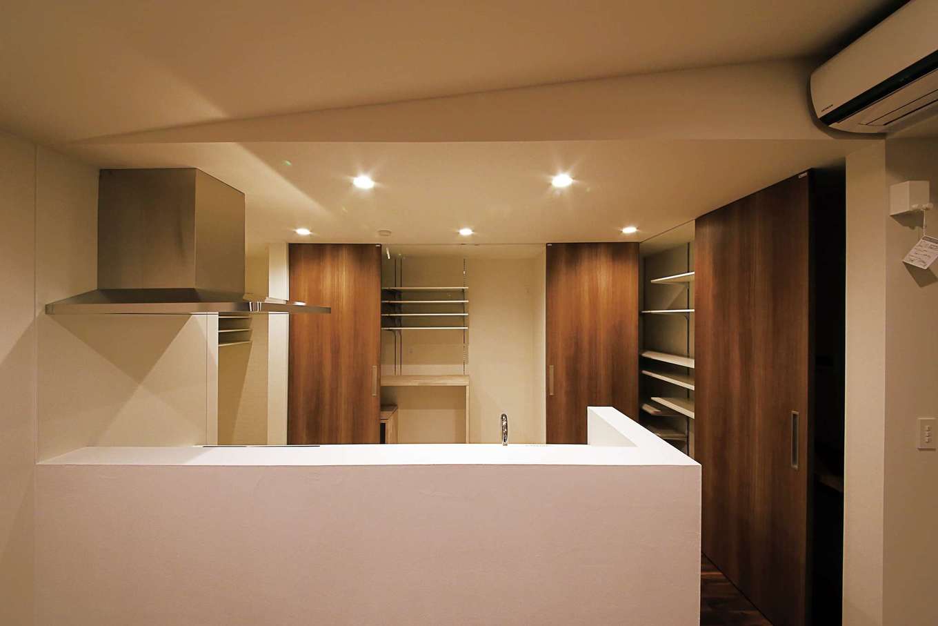 キッチンの腰壁の中にも収納スペースを用意 広いリビング 造作