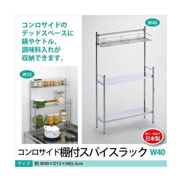 コンロサイド 棚付 スパイスラック 収納 ステンレス キッチンラック