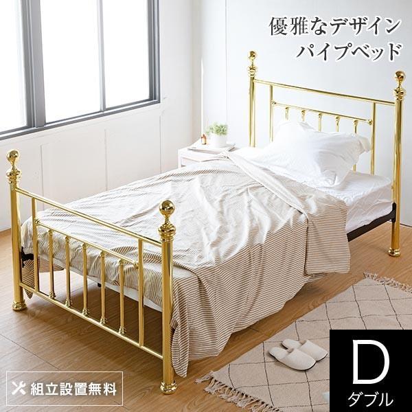 ベッド ダブル パイプ 組立設置無料 アステル 金属製 アイアン ゴールド ベット フレーム マットレス別売り B 00204 ベッド専門店 Venus Bed 通販 Yahoo ショッピング