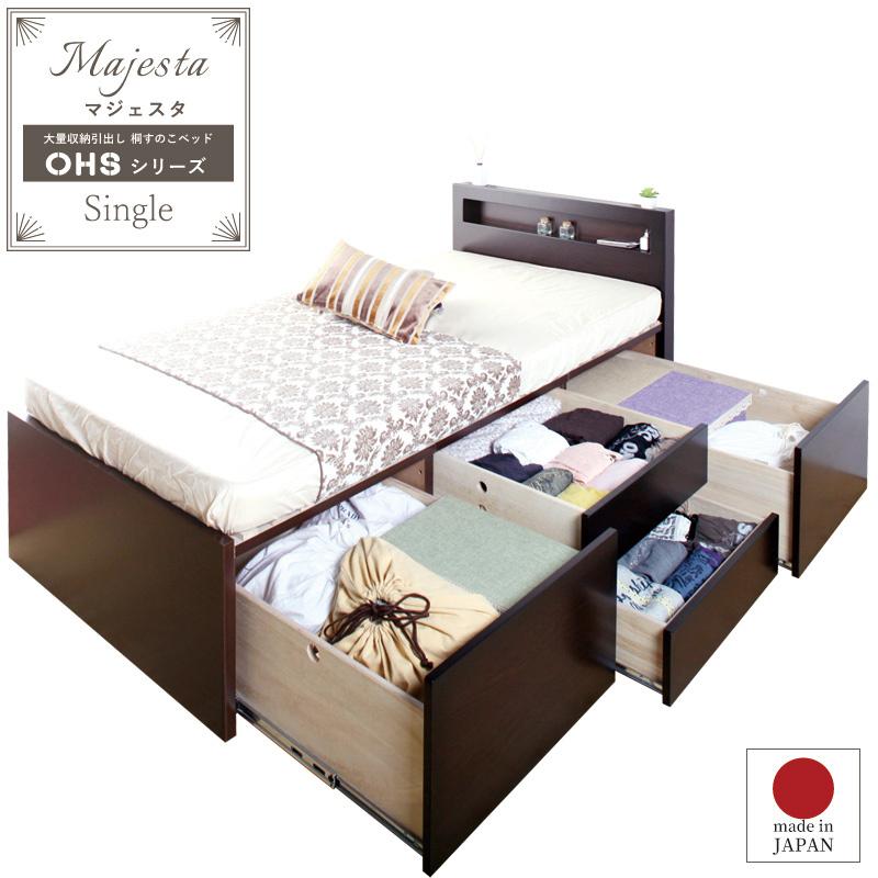 楽天市場 棚付カントリー調多収納桐すのこベッド シングル チェスト