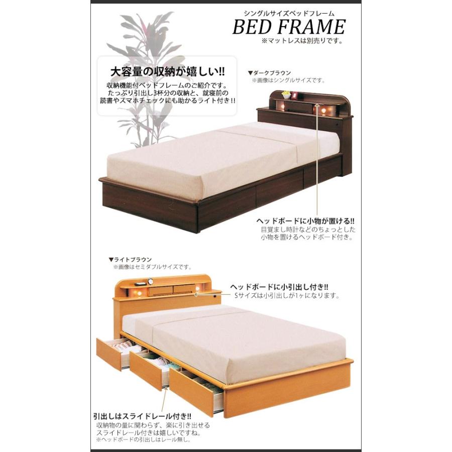 シングルベッド 収納付きベッド 引出し付きベッド ライト付 ベッド
