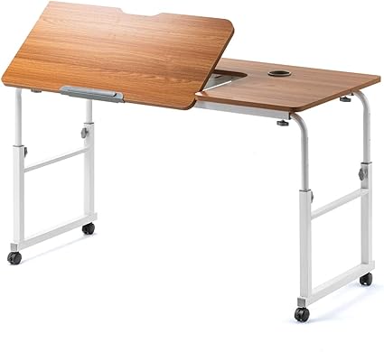 昇降式ベッドテーブル 手動昇降 脚幅伸縮 傾斜変更可能 カップ