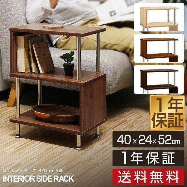 サイドテーブル 幅40 3段 サイドラック おしゃれ シェルフ 木目調 収納