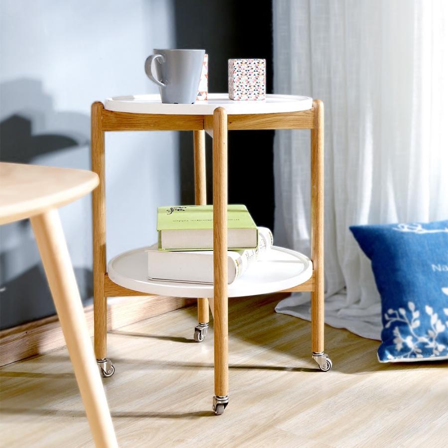 Mahome テーブル サイドテーブル 木製 丸 ベッド テーブル ワゴン