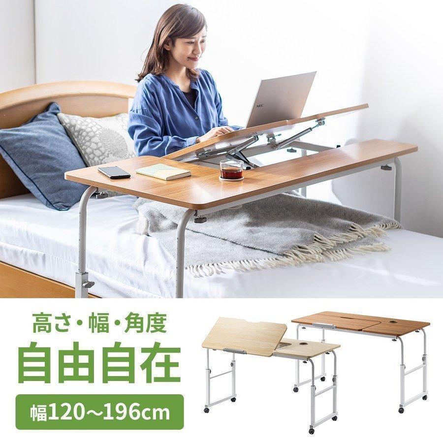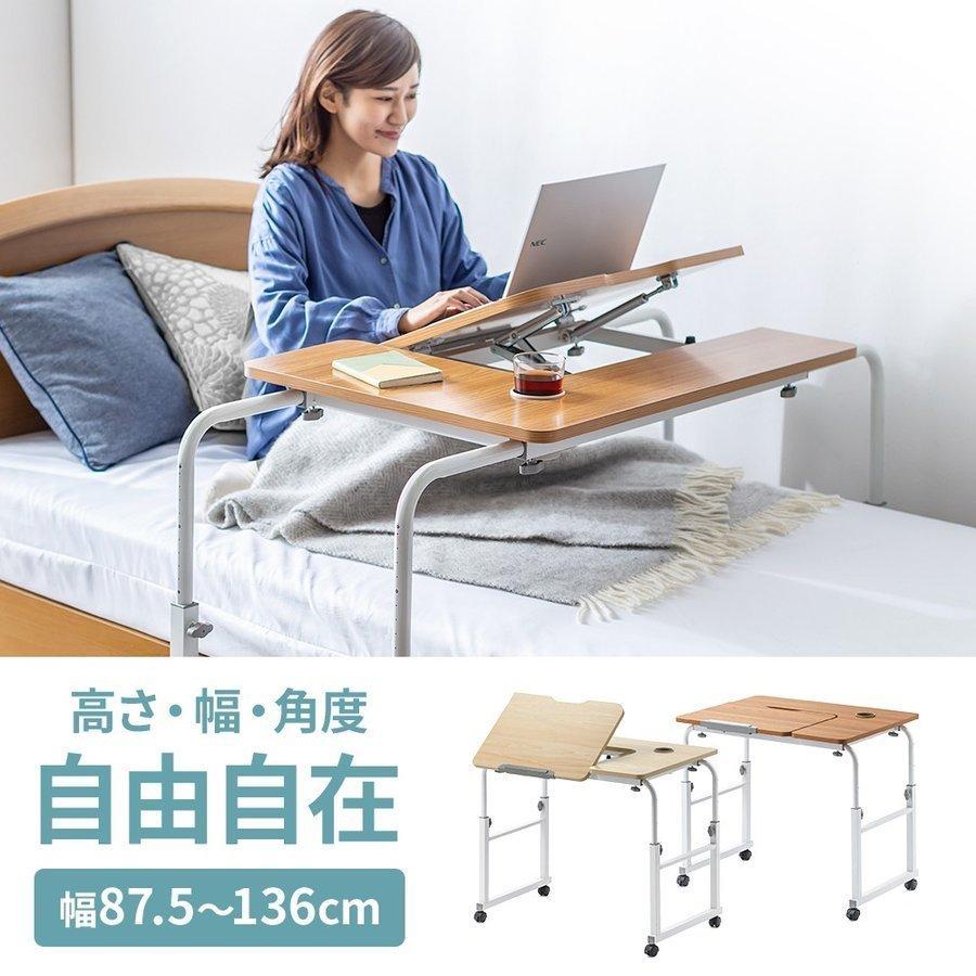 ベッドサイドテーブル ベッドテーブル キャスター付き 補助テーブル 介護用 介助 高さ調節 角度調節 伸縮 昇降式 パソコンデスク 幅120cm サイド テーブル サンワダイレクト 通販 Paypayモール