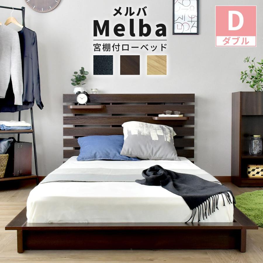 ベッド ダブル 棚付き 収納 ベット ベッドフレーム ローベッド メルバd