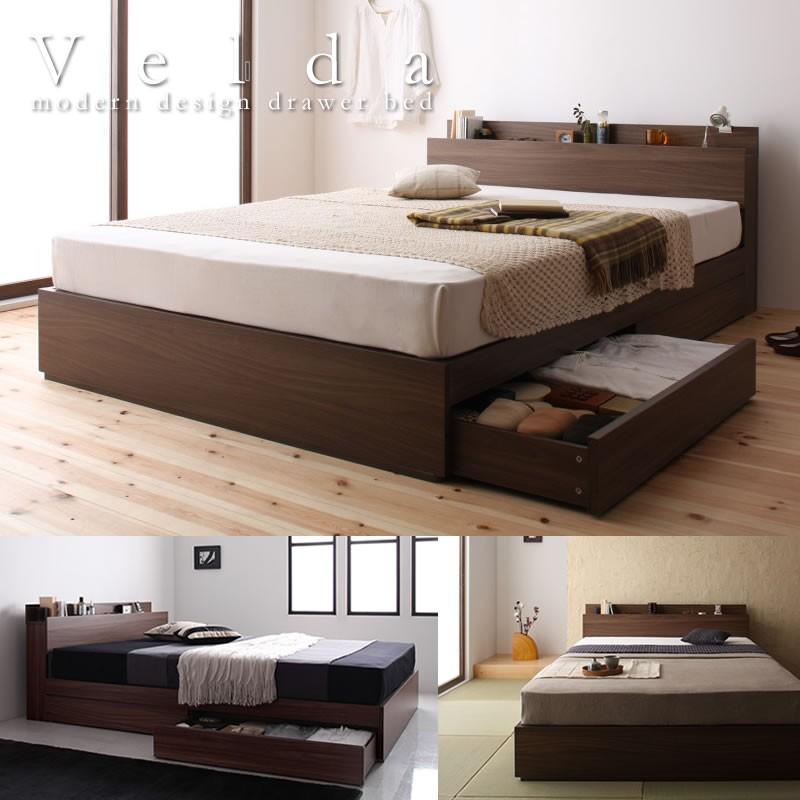 収納ベッド安い 人気 ウォールナット柄 棚 コンセント付き Velda