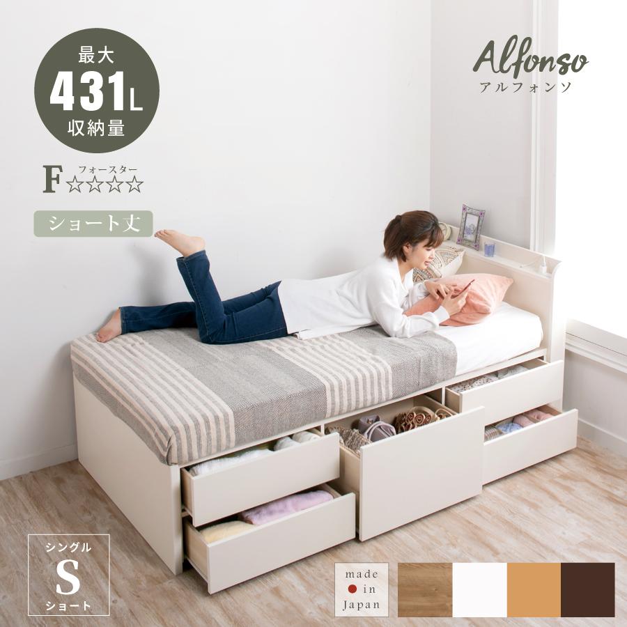 収納ベッド シングル ショート 日本製 幅98cm 全長190cm ベッド