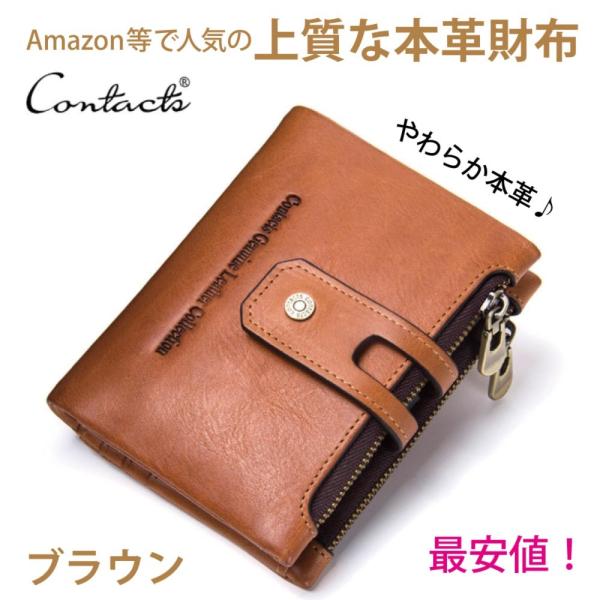 人気 Contacts 本革 レザー 財布 二つ折り メンズ おしゃれ 多機能 コンパクト 人気のブラウン Fs 054 やおよろず屋 通販 Yahoo ショッピング