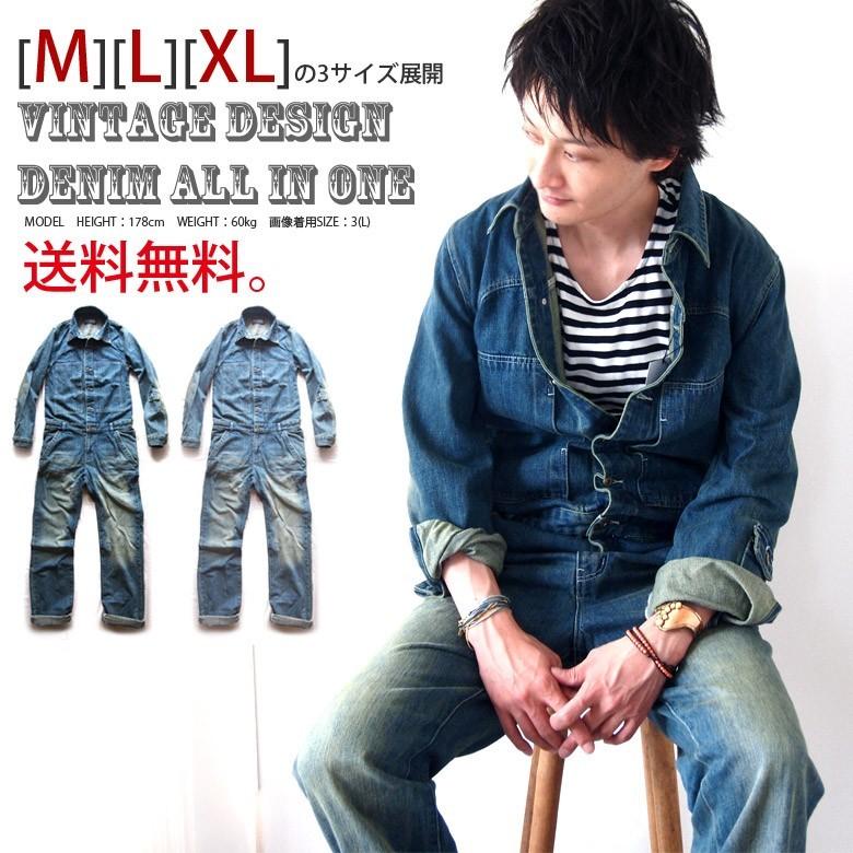 送料無料 デニム つなぎ メンズ オールインワン 作業着 バイク