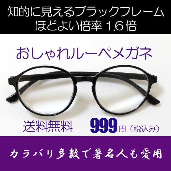 ルーペメガネ 両手が使える おしゃれな拡大鏡 知的デザイン ブラック