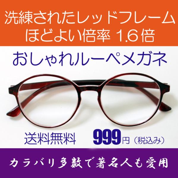 ルーペメガネ 両手が使える おしゃれな拡大鏡 洗練されたレッド