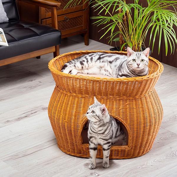 小型犬にもおすすめ 猫が喜ぶラタンのキャットハウス 2段ベッド 猫