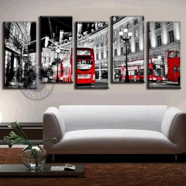 絵画 インテリア アートパネル 5ピース モノクロ 赤いバス 全幅125cm
