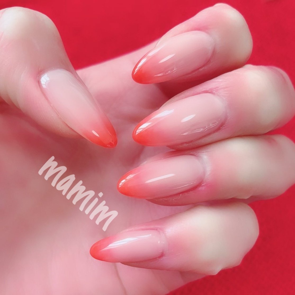 シンプル グラデーション ベージュ レッド Mamimのネイルデザイン No
