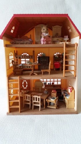 シルバニア 3階建てのおしゃれなお家 家具いっぱい シマネコファミリー